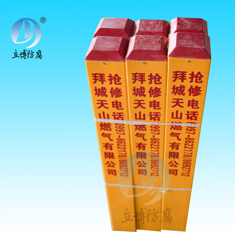 測試樁設(shè)計為多功能測試樁,用于陰極保護參數(shù)的檢測,是管道管理維護中必不可少的裝置,按測試功能沿線布設(shè)。測試樁用于管道電位、電流、絕緣性能的檢測,本裝置裝有6個接線柱,可以根據(jù)設(shè)計單位的具體要求方便地組成電位、電流、犧牲陽極、絕緣性能測試樁或交叉管道測試樁等。測試樁由樁體、測試接線板、測試導(dǎo)線和銘牌等幾部分組成。